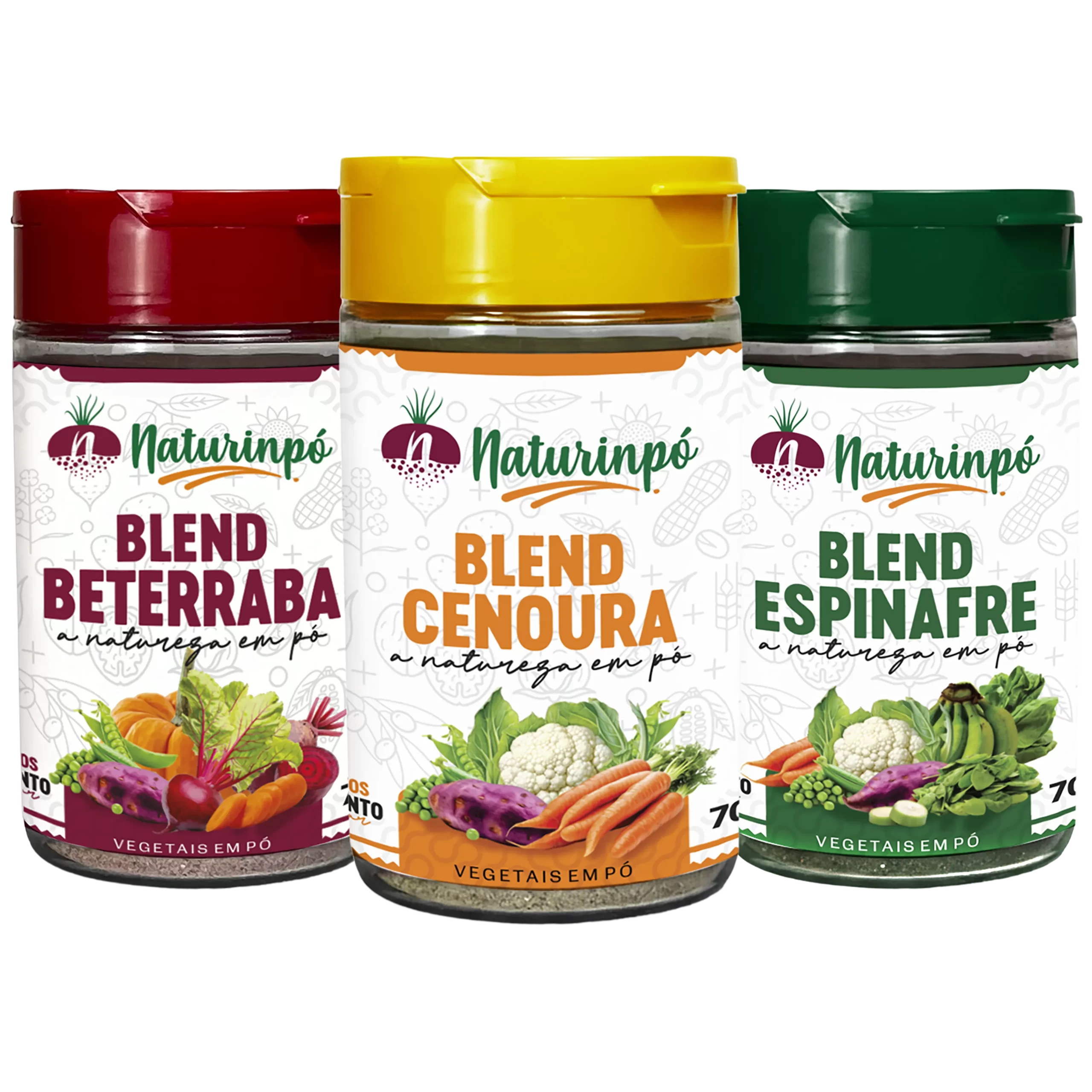 Vegetais desidratados e moídos sem conservantes, corantes ou aditivos artificiais.